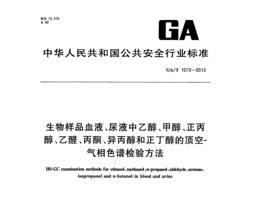 GA/T842-2009公安部血液中的酒精檢測(cè)標(biāo)準(zhǔn) 本標(biāo)準(zhǔn)規(guī)定了血液酒精含量的頂空氣相色譜檢驗(yàn)方法。 本標(biāo)準(zhǔn)適用于道路交通執(zhí)法活動(dòng)中對(duì)人員血液中酒精(以... 更新日期:2020-01-08 下載包(1)