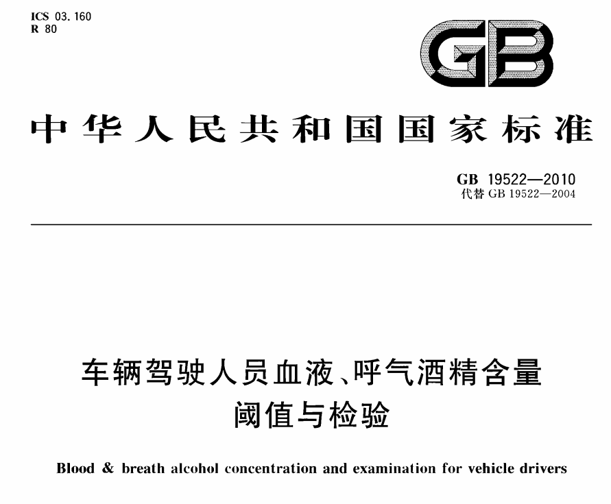 GB 19522-2010 車輛駕駛?cè)藛T血液、呼氣酒精含量閾值與檢驗(yàn) 中華人民共和國(guó)國(guó)家標(biāo)準(zhǔn)——車輛駕駛?cè)藛T血液、呼氣酒精含量閾值與檢驗(yàn)標(biāo)準(zhǔn)(由國(guó)家公安部提出,國(guó)家質(zhì)量監(jiān)... 更新日期:2020-05-09 下載包(1)