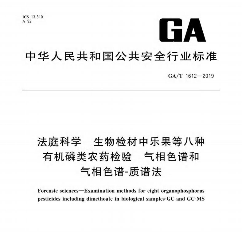 GAT16122019法庭科學(xué)生物檢材中樂果等八種有機磷類農(nóng)藥檢驗氣相色譜和氣相色譜質(zhì)譜法 更新日期:2022-12-30 下載包(1)