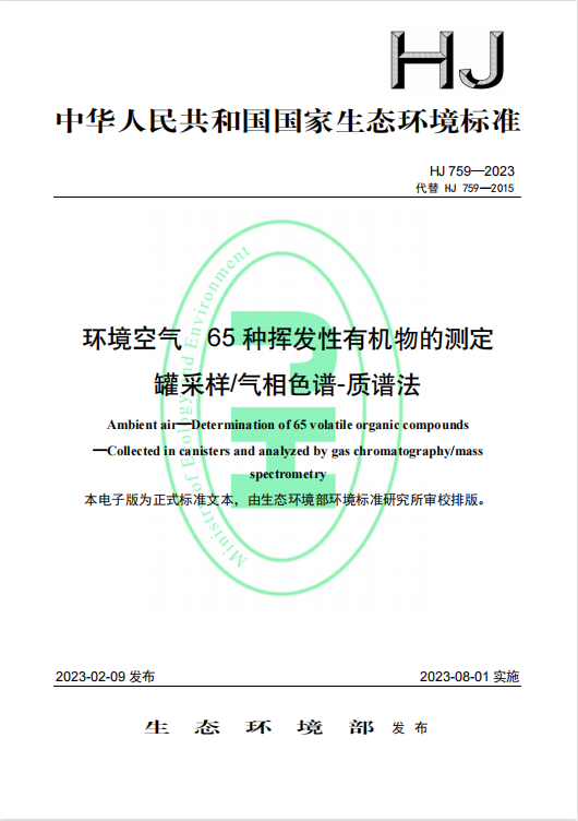 HJ 759—2023環(huán)境空氣 65 種揮發(fā)性有機(jī)物的測(cè)定 罐采樣 氣相色譜-質(zhì)譜法 HJ 759—2023環(huán)境空氣 65 種揮發(fā)性有機(jī)物的測(cè)定 罐采樣 氣相色譜-質(zhì)譜法 更新日期:2023-03-15 下載包(1)