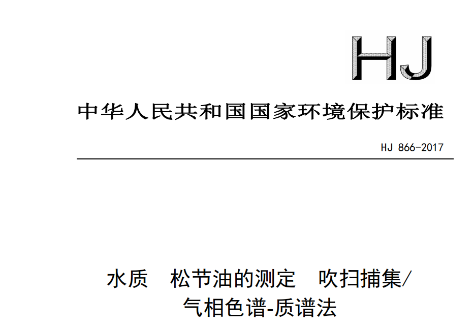 HJ 866-2017 水質 松節(jié)油的測定 吹掃捕集-氣相色譜-質譜法(發(fā)布稿) 本標準規(guī)定了測定水中松節(jié)油的吹掃捕集 /氣相色譜 -質譜法。 本標準適用于地表水、地下水、生活污水和... 更新日期:2020-04-01 下載包(1)